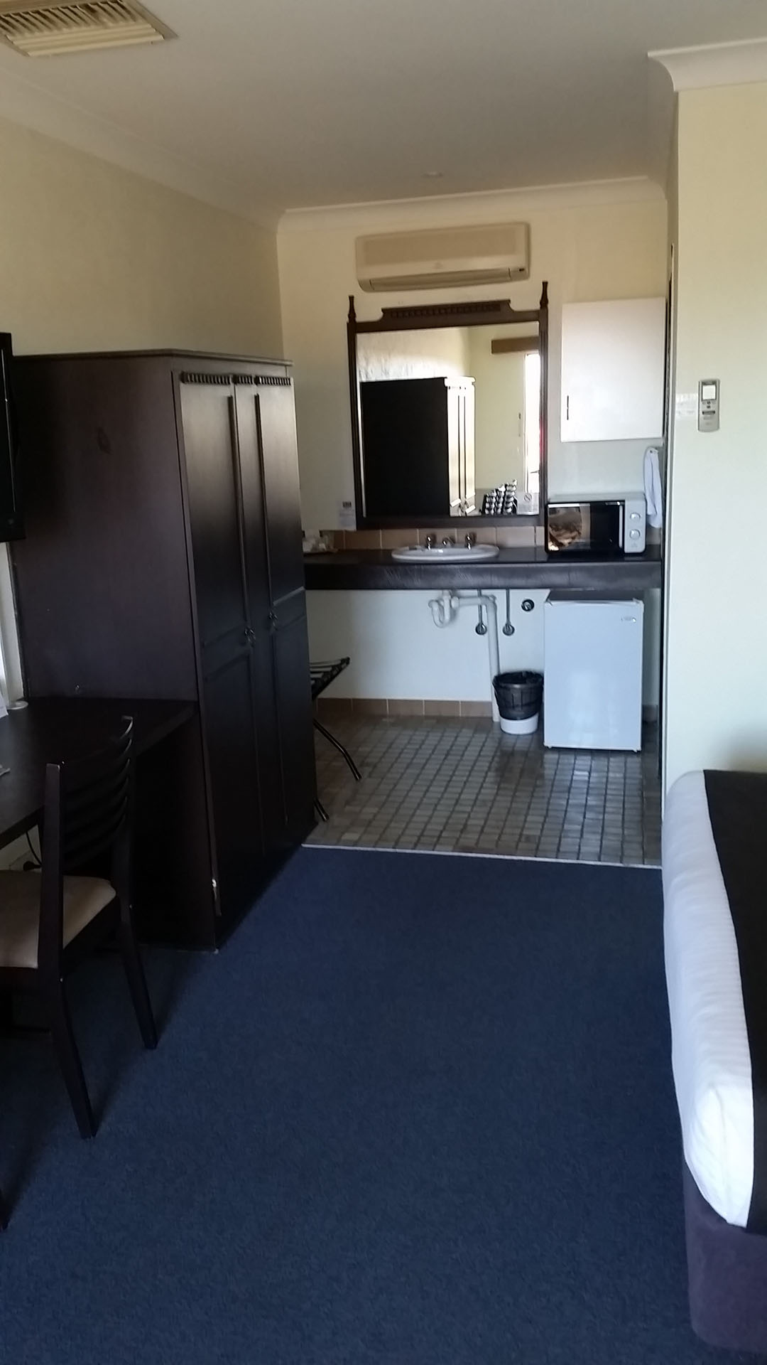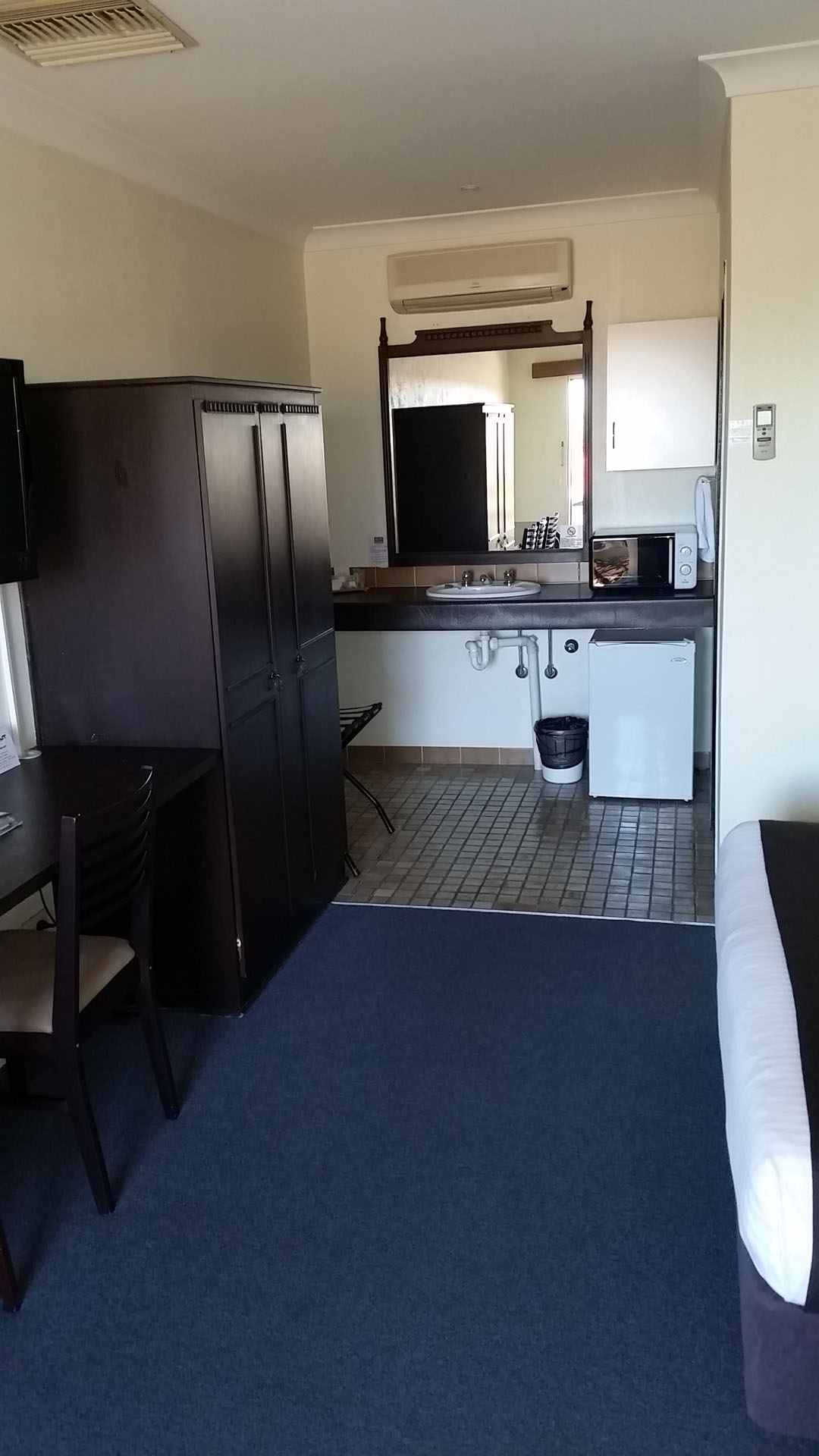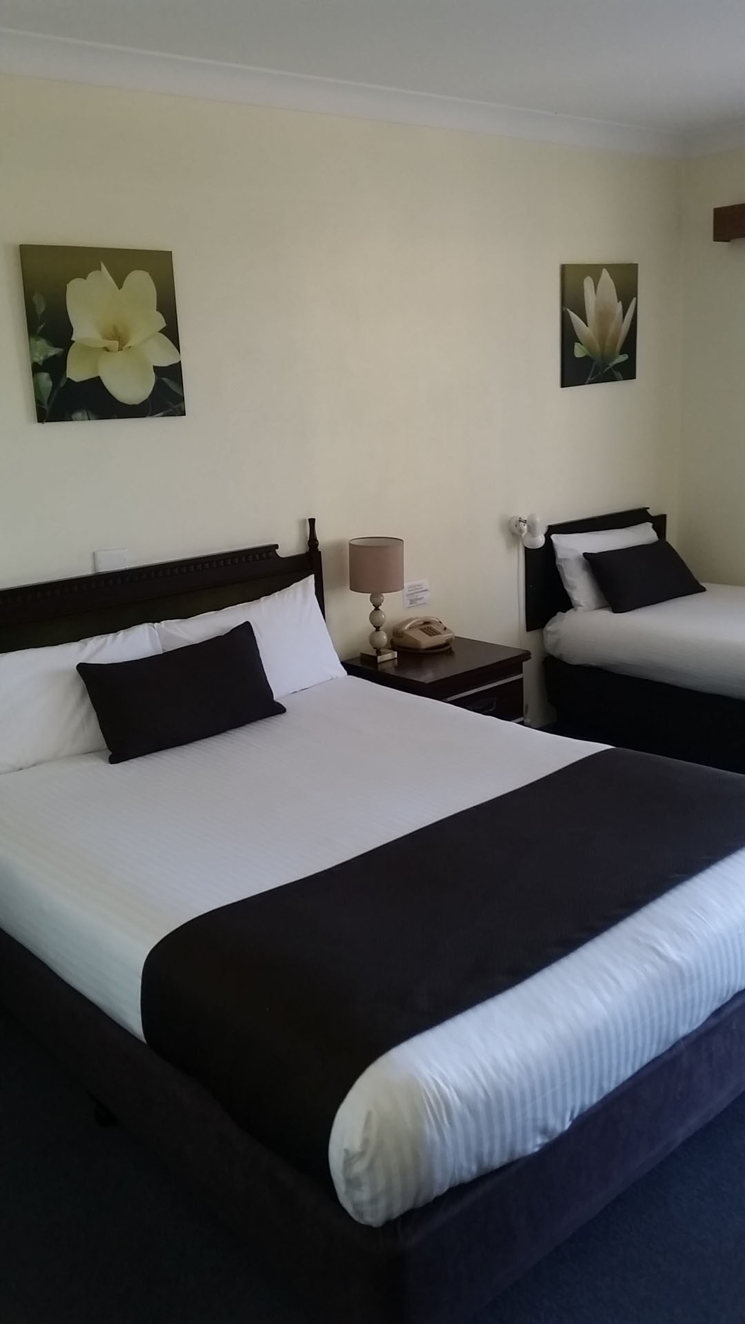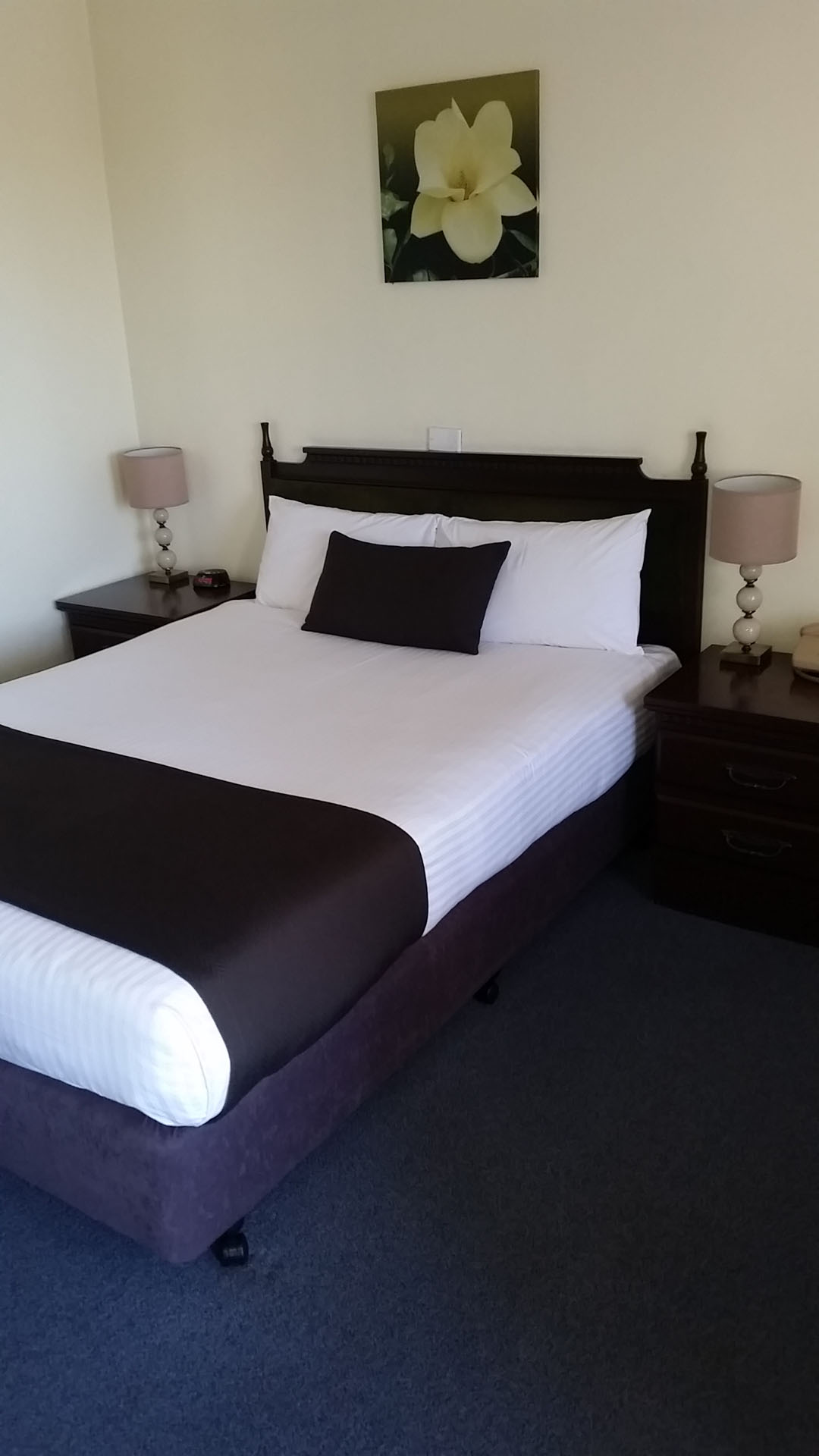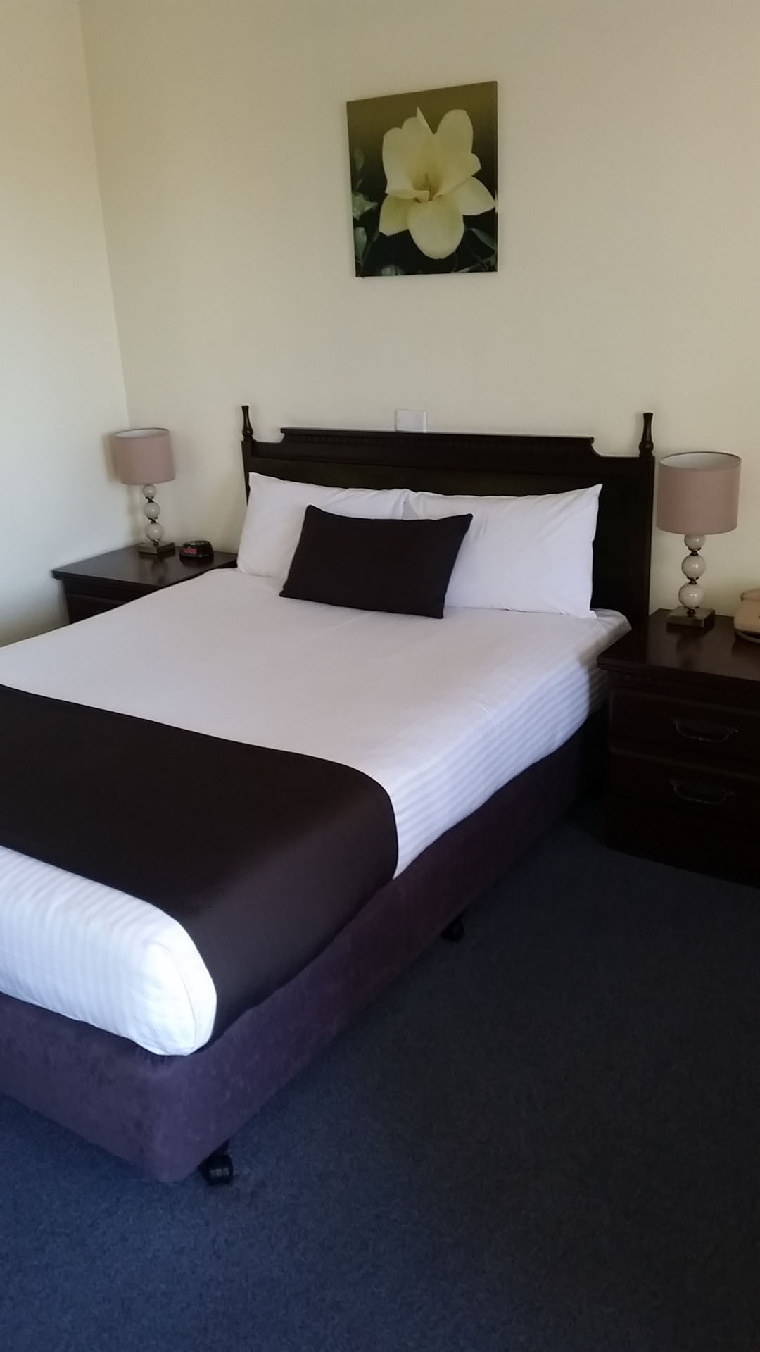 Our Budget rooms are simply our older style rooms that are ground floor but most do have some steps to access the room. The Twin Budget room features a Queen Bed with one Single Bed with crisp white linen and duvet, electric blanket. Each room has its own ensuite and desk or bench for those that need a work area. Facilities include microwave ovens, toaster, kettle, bar fridge, crockery and cutlery, tea and coffee, digital TV, Foxtel and free WIFI. These rooms sleep a maximum of 3 people.
